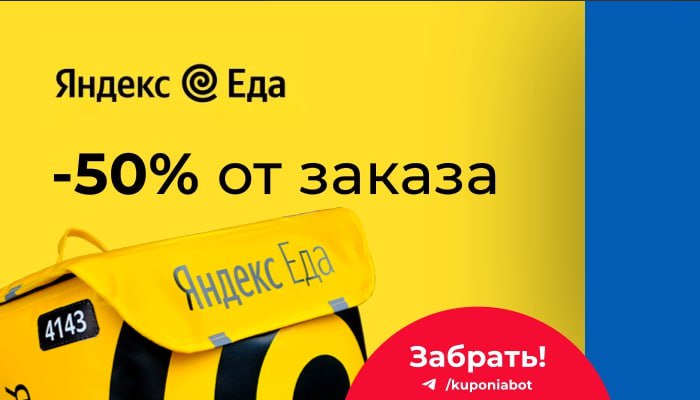 Яндекс Еда — промокоды на доставку каждый день.