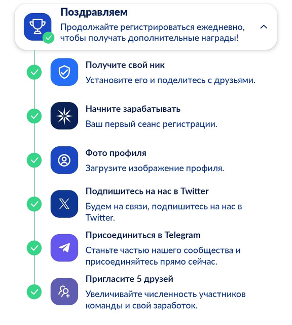 - Активная сессия майнинга: Для участия в распределении пользователи должны иметь активную сессию майнинга.